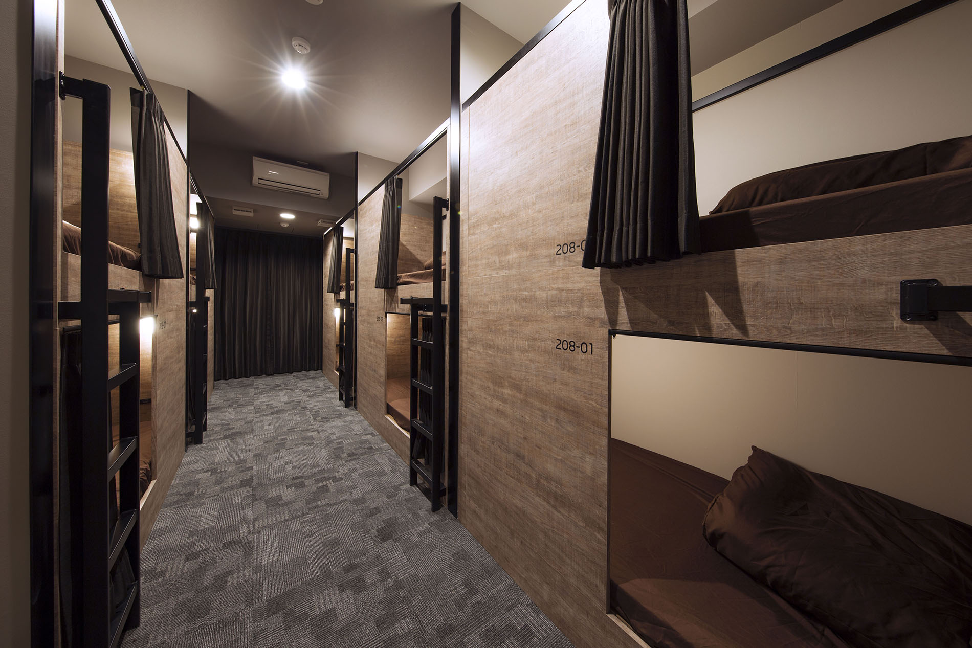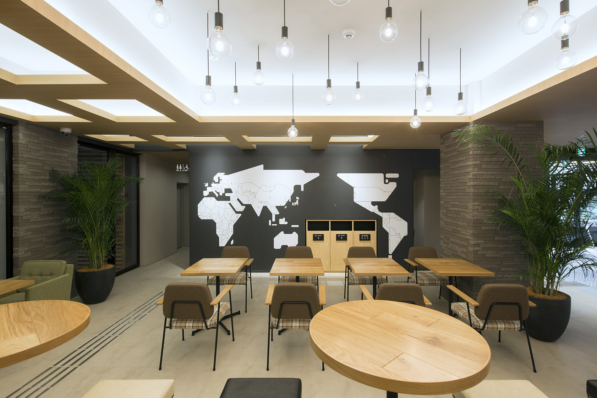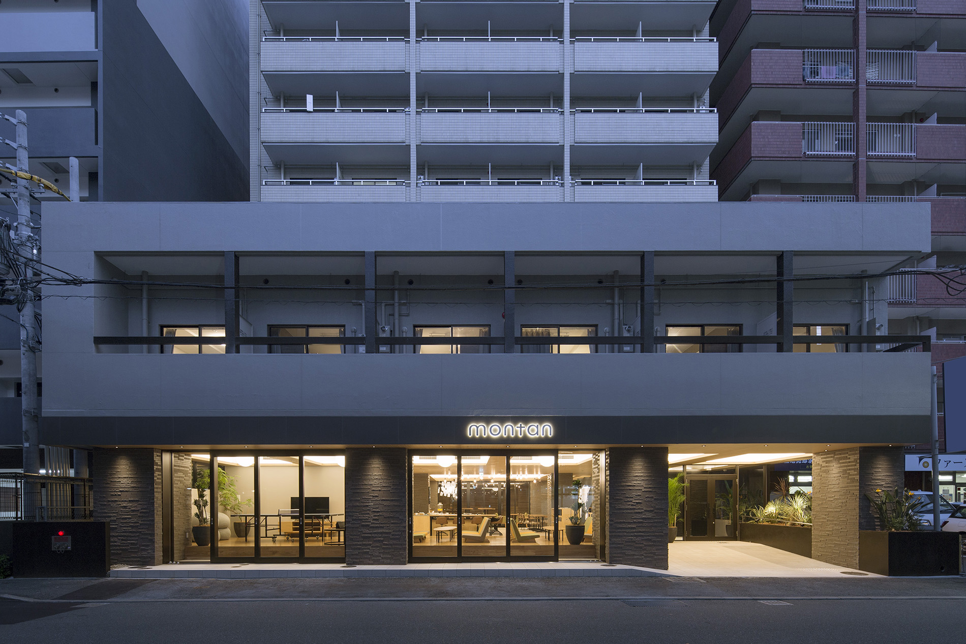 福岡市の旅館業法施工条例改正以降、福岡市で初の同一フロアー内で客室と住戸が共存するホテル&レジデンスとなりました。1階共用部には、ホテルのフロントと、コミュニティ-スペースとしてキッチンを配したダイニングやロビー、縁側を設け、居住者や旅行客だけでなく、地域住民の方にも自由に、ご利用できる開放した空間となっています。