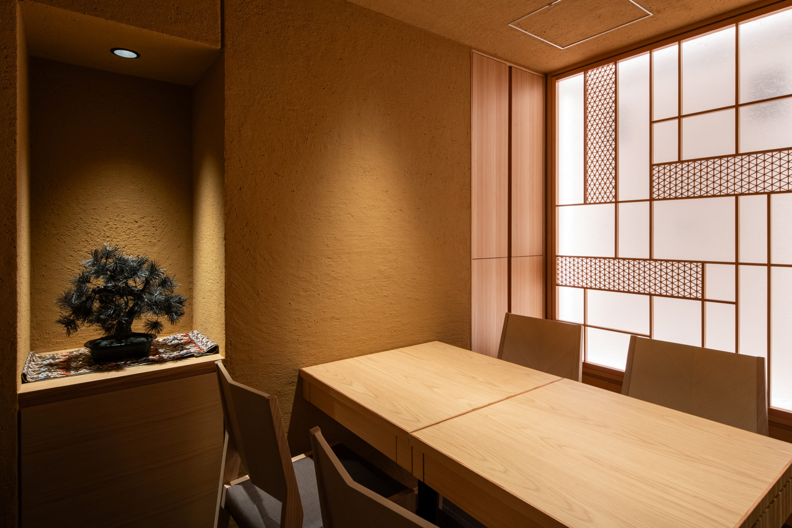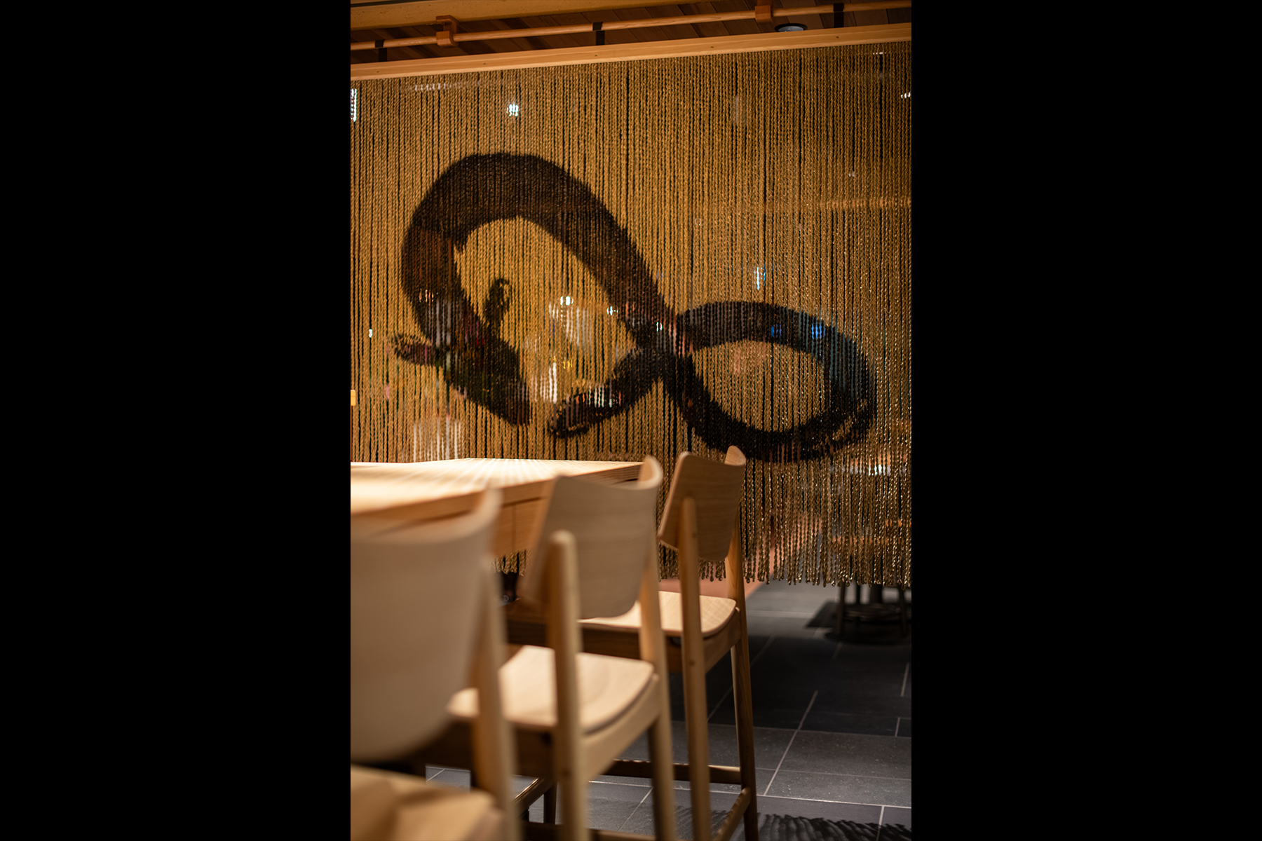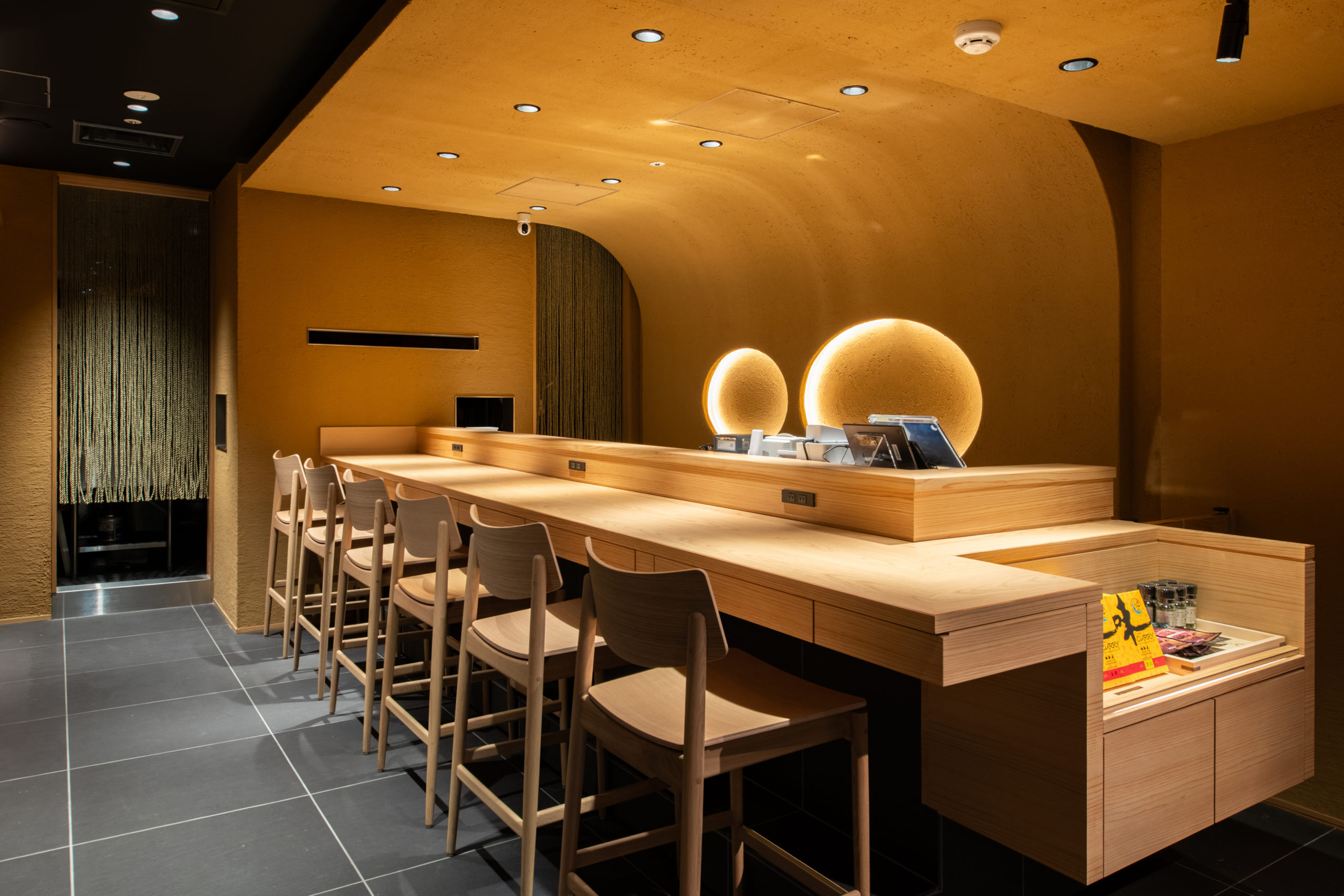 中洲にあるミシュラン一つ星掲載店の「割烹味美」が手掛ける鰻料理店。 和をベースとし、落ち着きとカジュアルさの両方を目指した空間コンセプトであり、 「鰻」をイメージさせるディティール要素を組み合わせて全体デザインを構成しました。