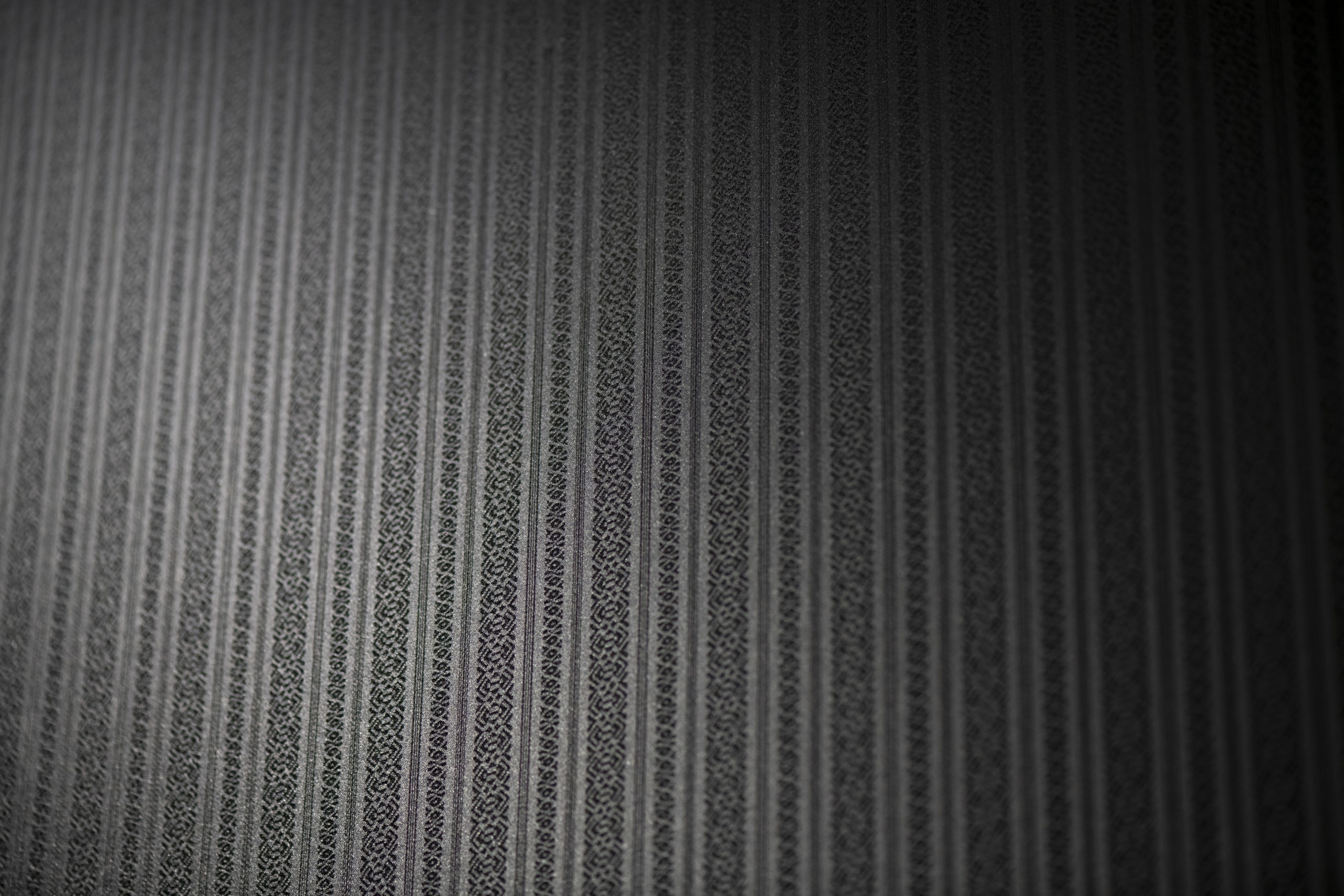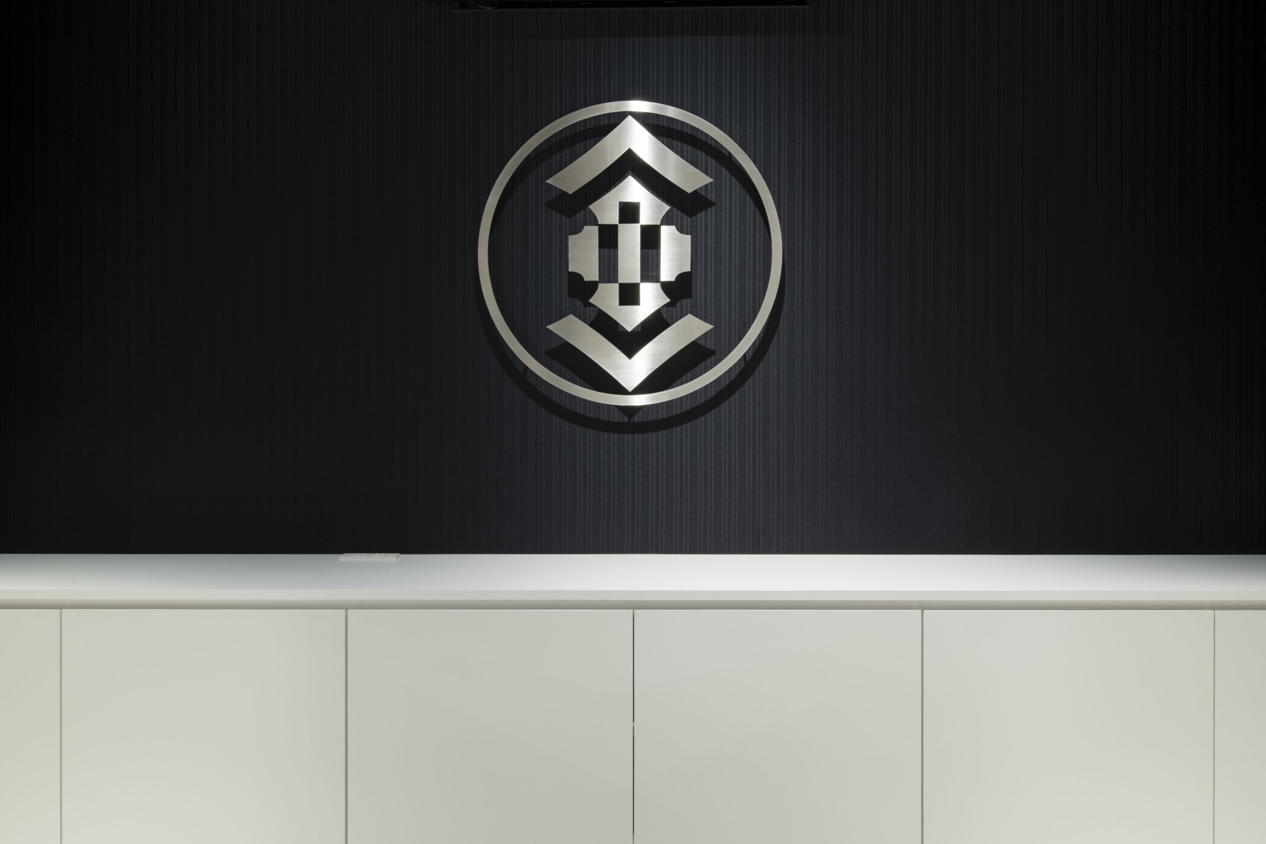 博多織の左右対称で端正なテキスタイルと、日本の伝統建築が持つ対称性を空間構成に反 映。モノトーンで素材を抑え、多彩な柄や色の商品を引き立てつつ、特注博多織クロスによ り文化を体験できる象徴的な空間としました。